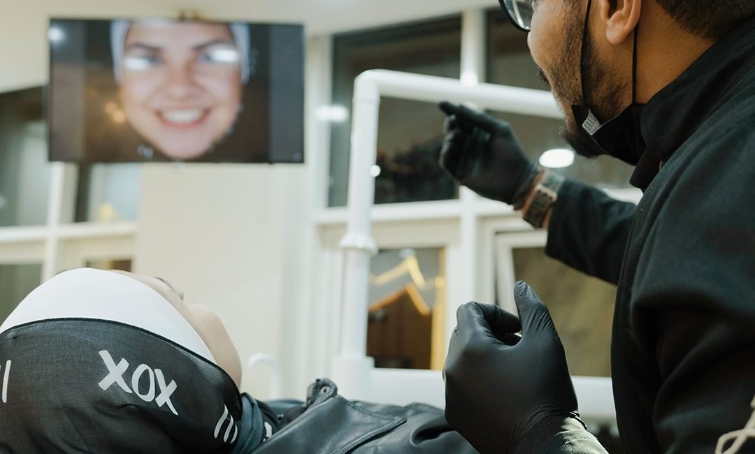 The dental implant consists of a screw at the bottom, and a crown resembling The Shape of a tooth at the top, It is implanted inside the bones and performs the tooth function, to replace the missing teeth